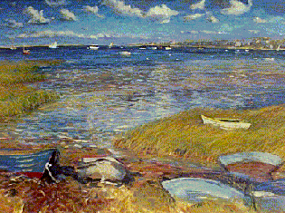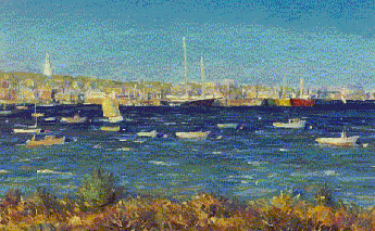 The oil painting at left, Nantucket Harbor, measures 20" x